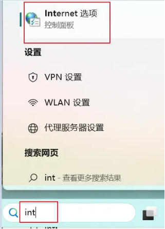 1. 在任务栏的搜索框中,搜索Internet,点Internet 选项