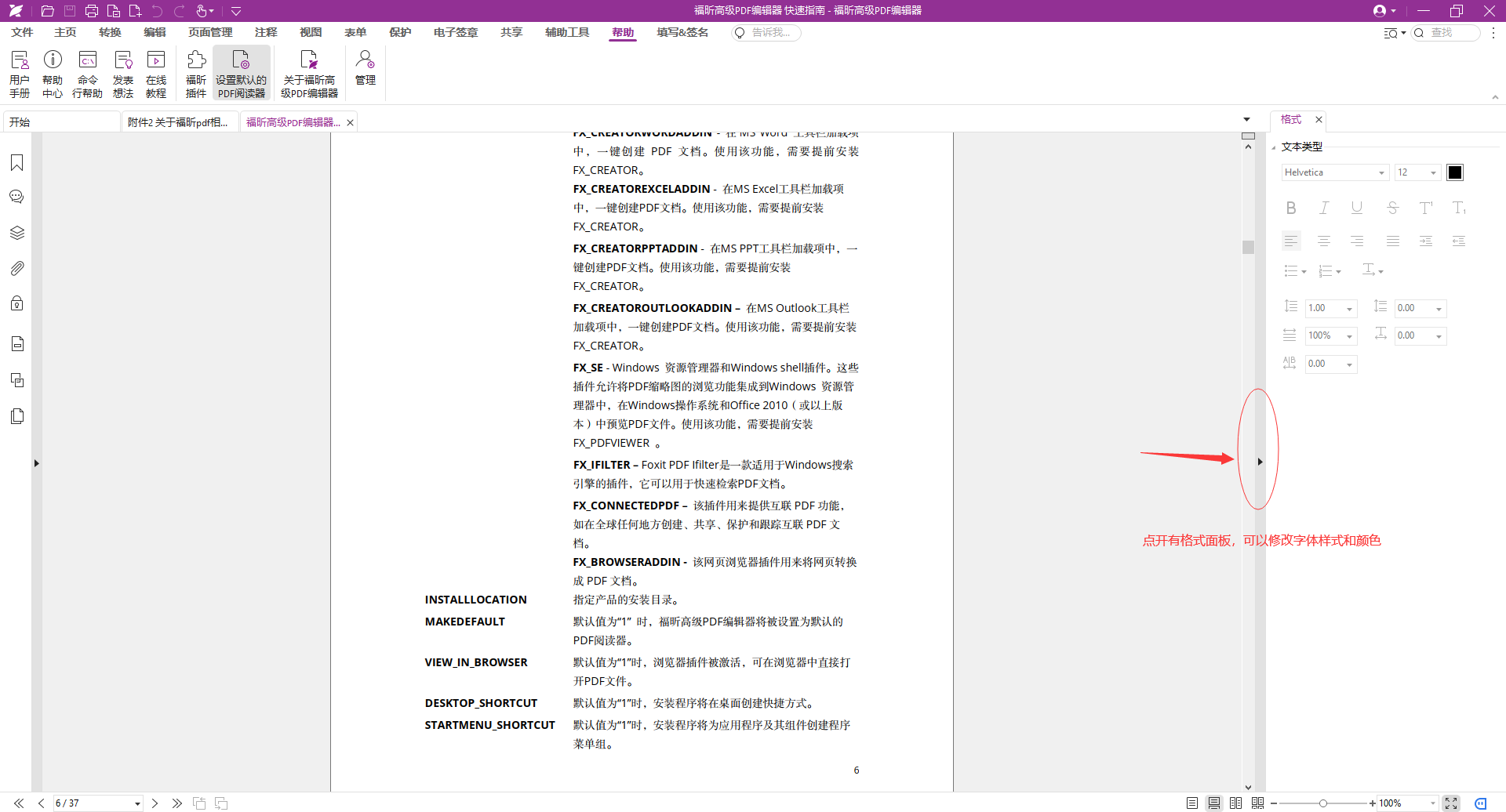 福昕高级PDF编辑器V11版本及更高版本,在使用注释工具或编辑工具时,“格式”面板从原菜单栏上更改到程序右侧。