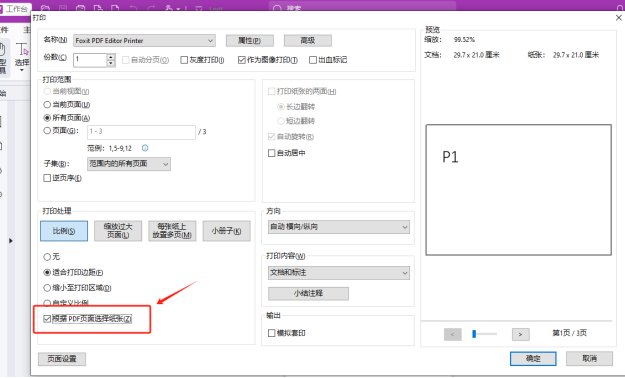 A: 虚拟打印时,在打印设置框上勾选上“根据PDF页面选择纸张”,即可保持文档原来的页面方向混排模式。