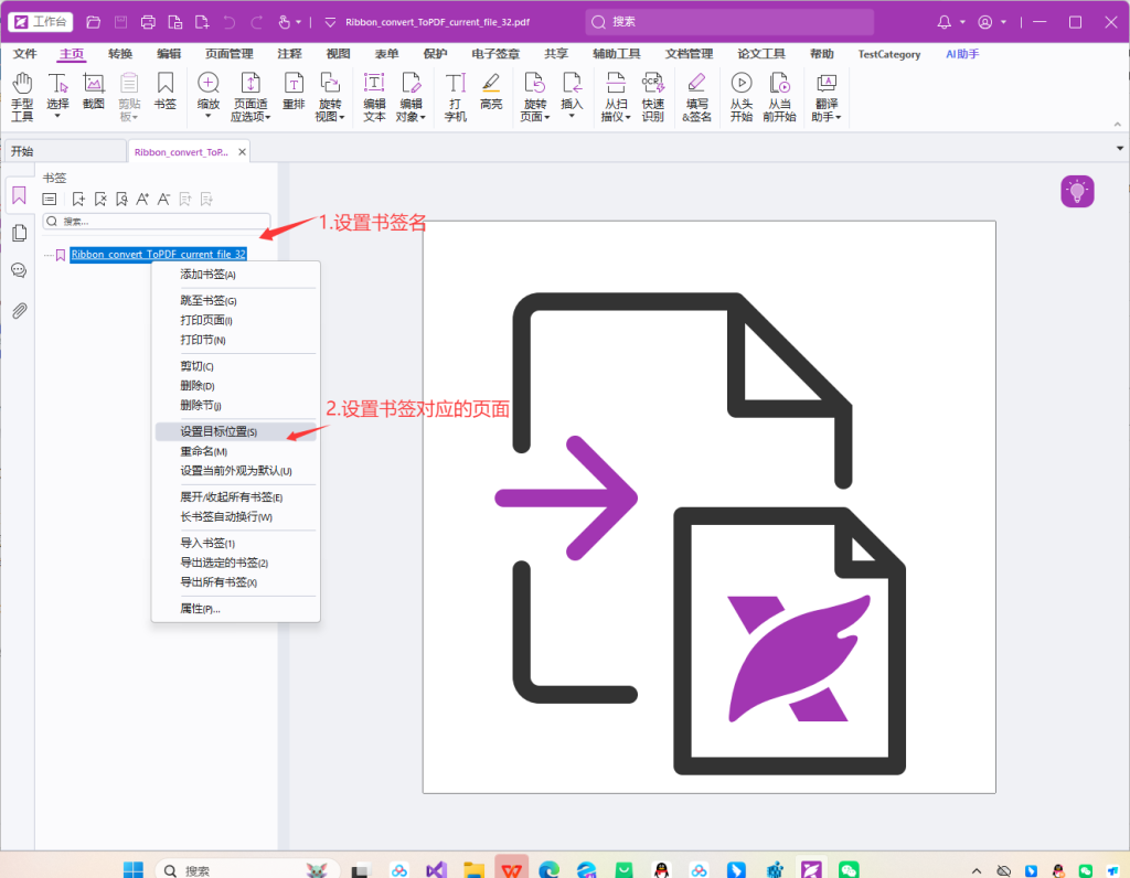 • 后续接口将通过传入书签名指定使用 PDF 的某一页作为图标(示例见下图)。
