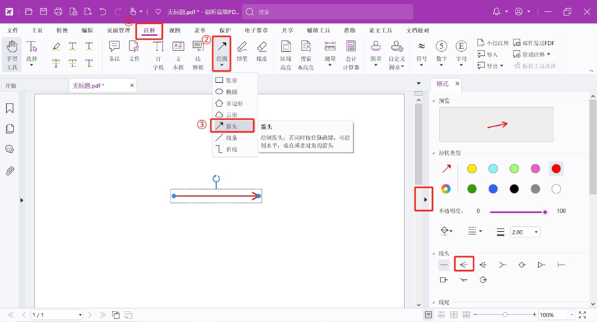 在PDF中如何画双箭头线条?