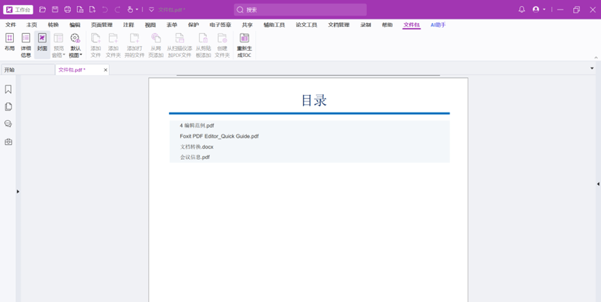 在一个项目可能存在多种不同的文件格式,在项目文件汇总整理的时候可以采用福昕高级PDF编辑器中的文件包功能对文件进行整理。随着文件的不断增加为了查看PDF文件包中究竟有哪些文件,如何给PDF文件包生成一个目录?