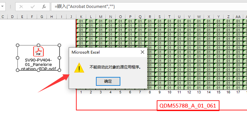 在日常办公中经常会遇到客户发过来的Word或者Excel文档中有嵌入Acrobat PDF图标,而如果电脑没安装Acrobat软件直接双击打开会报“不能启用此对象的源应用程序”,如图所示: