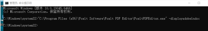 “C:\Program Files (x86)\Foxit Software\Foxit PDF Editor\FoxitPDFEditor.exe” -displayadobeindoc