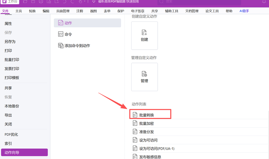 动作向导批量转换文档并保存