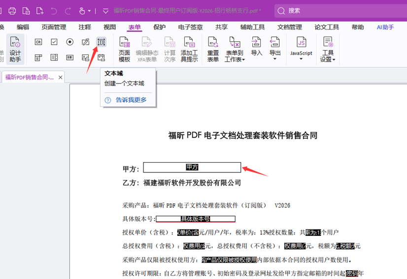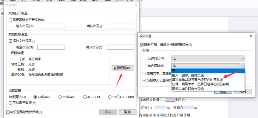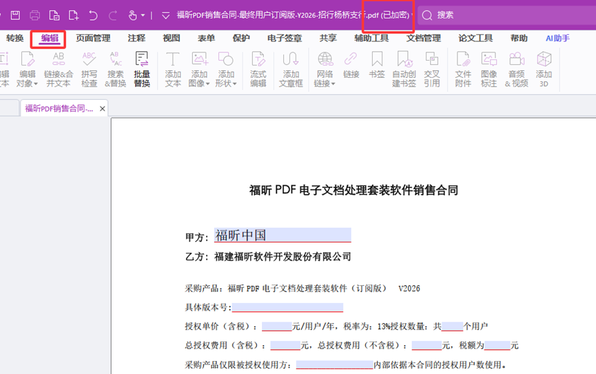 在日常学习和工作中,有时候会遇到订货单、销售合同等文件已有固定格式,用户只需要添加相关信息即可,其他区域不允许修改,这种应用场景可以使用创建PDF表单后再设置文档权限密码,具体操作如下: