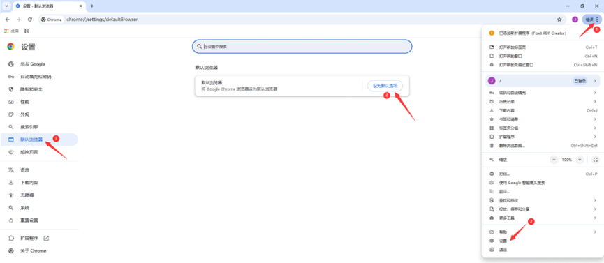 1. 重新设置默认浏览器,将edge或者Google浏览器等设置为默认浏览器