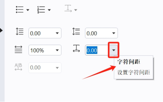 如果要调整行间距或者字间距,我们可以点击该功能后面的小三角形,来选择数字,数字越大间距越大。小三角形后面最大的数字为5,但是我们可以手动输入任意数字哦!