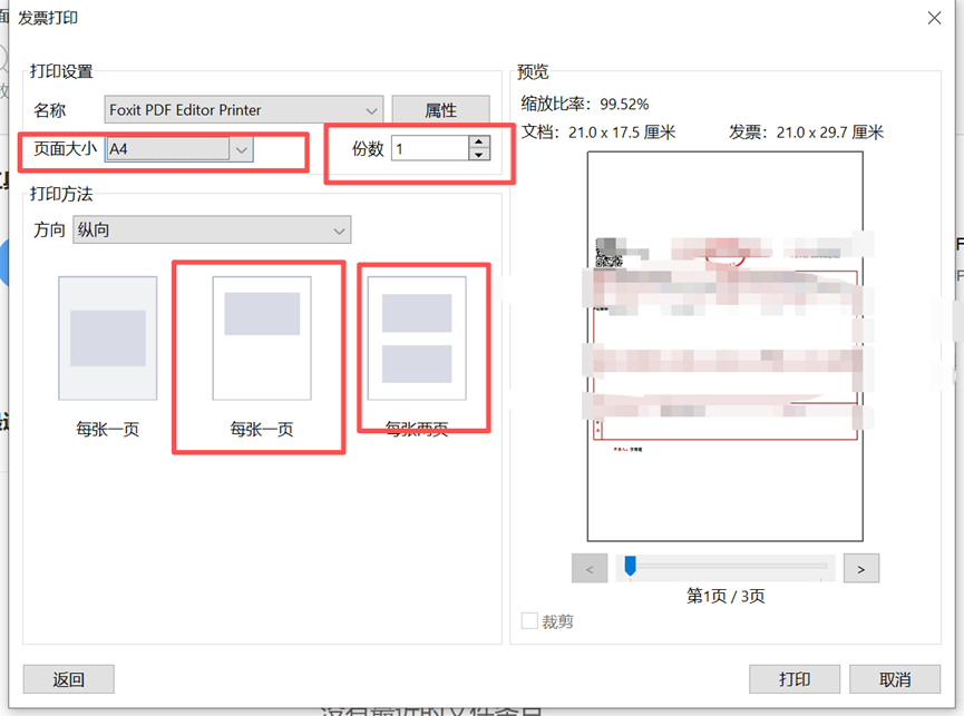尽管发票全面数字化正在普及,但许多企业的内部财务流程仍要求将 PDF 电子发票打印出来。在福昕高级PDF编辑器里面有发票打印一项,可以按照不同的份数、页面大小、或者是一个纸张上面放置多页打印出来。