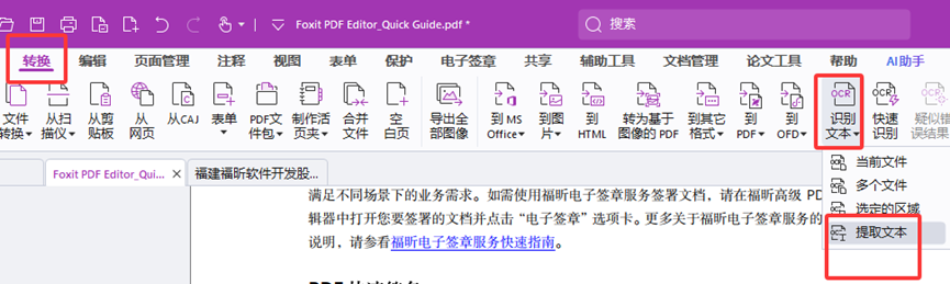 福昕高级PDF编辑器如何对扫描件进行区域识别并提取文本内容