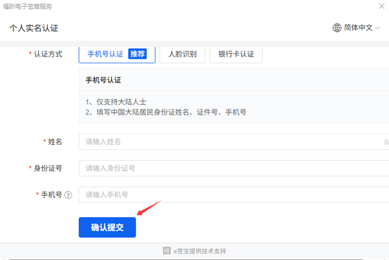 • 个人实名认证,电子签章