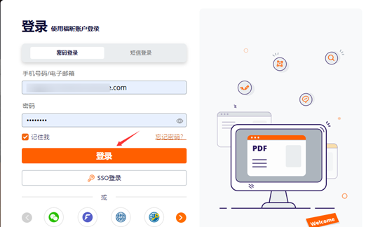 打开软件,点击“电子签章-企业管理-对外签署授权”,软件会在浏览器中跳转到福昕管理控制平台上,输入所使用的账号登录进去。