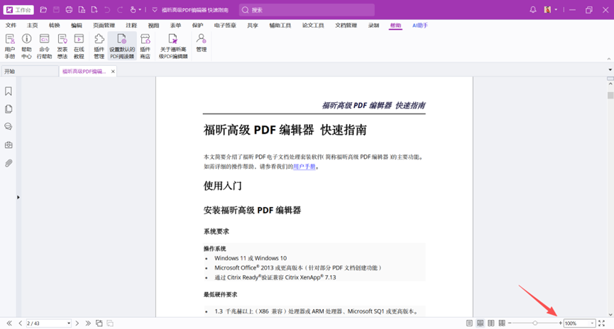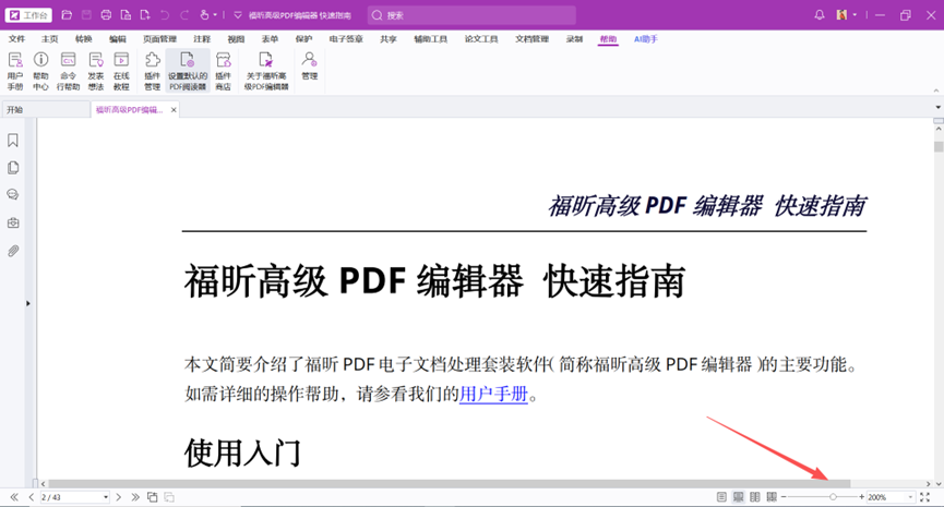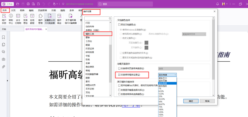 在使用福昕高级PDF编辑器打开文档时,显示的缩放比例都是200%如何修改这个默认的缩放比例修改成100%?